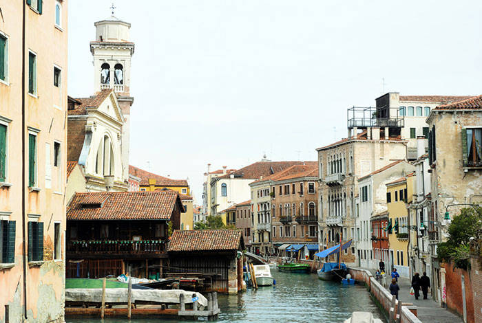 14.00 – Gå deg vill i Dorsoduro og San Polo, to av Venezias distrikt som ikke oser av turistifiserte stopp. Langs San Trovaso-kanalen finner du et av byens få gjenlevende gondolverft. Lurer du på hvorfor verftet ser ut som en hytte i Alpene? Det er fordi gondolmakerne tradisjonelt sett har vært fra de nord-Italienske Dolomittene der de er vant til å behandle treverk.