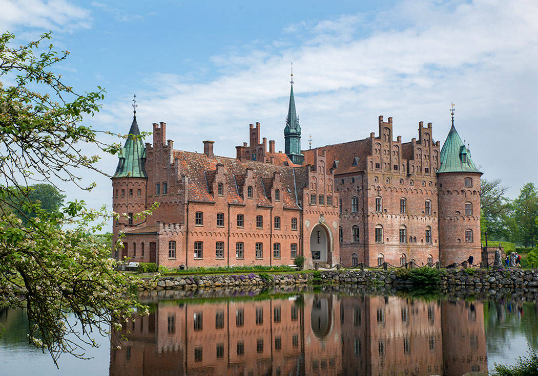 Altså, det finnes slott, også finnes det Egeskov! Jeg har besøkt de vakre slottene i Loiredalen og overnattet på slott i Skottland, men Egeskov er noe eget. Slottet ble bygget i 1554, og ligger som et vakkert fata morgana i en liten innsjø. Deler av slottet er åpent for publikumsbesøk, mens andre deler er forbeholdt greve Michael Ahlefeldt, som er så heldig å kunne kalle slottet sitt hjem. Jeg kommer tilbake til denne greven, for han er definitivt en mann som – når han ikke deltar på adelige arrangementer med den danske kongefamilien – dyrker det virkelig gode liv.