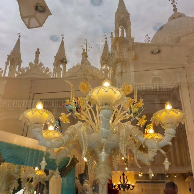 Mormor vil ha glassring, Siena vil ha øredobber og maske, jeg vil ha en medaljong, og Mattis og bestefaren vil mest av alt slippe alt som heter shopping. Vi rekker innom et par butikker, og får handlet vakre glassmykker med hjem. Barna lærer om den ekslusive glasskunsten som startet i Venezia for sjuhundre år siden, og at de som jobbet med glass var blant byens rikeste. For å støtte opp om lokalt håndtverk, sørger vi for å ikke kjøpe glass Made in China.