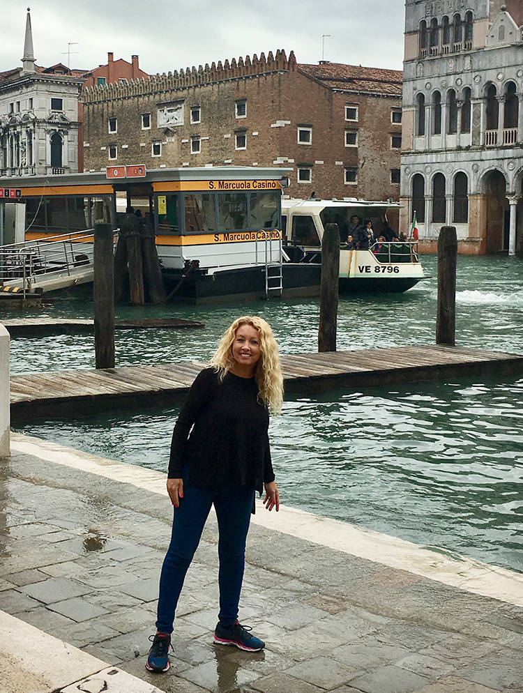 Før vi dro hadde jeg bestilt gondoltur med Venezias første kvinnelige gondoliera, Alex Hai. Jeg har hatt gleden av å sitte i gondolen hennes, Pegasus, flere ganger før, og føler meg skikkelig velkommen ombord når hun ber meg innta min ‘faste plass’ ved rekka.