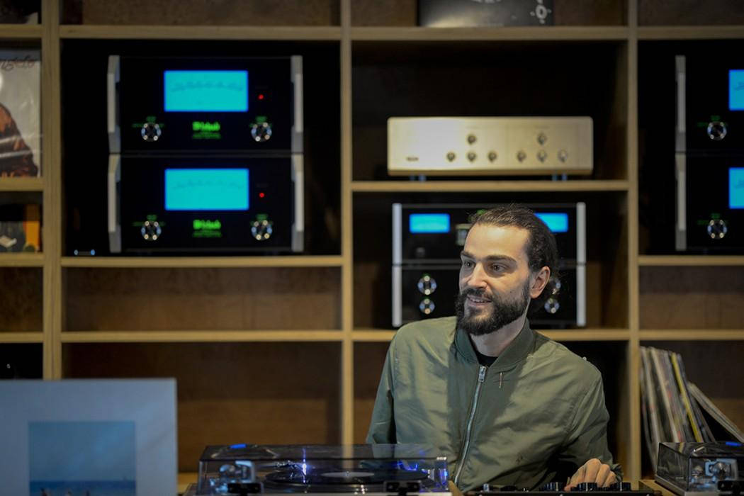 Det som omsider fikk meg til å tvinge tanken bort fra frykten på bakkeplan var hotellets Listening lounge. Jeg har aldri vært borti en Listening lounge før, men kjente meg hjemme med det samme. Jeg har faktisk egentlig alltid ønsket meg en Listening lounge – uten å være klar over det selv – når jeg haster mellom møter, og kjenner at jeg trenger en timeout. På At Six ligger Listenting loungen i femte etasje, innenfor restauranten, i et avlukke med utsikt mot Brunkenbergstorg. Akustikken er perfekt, og lydkvaliteten på skivene som Victor Sanchez snurrer, er som en klokkeklar symfoni av stemmer og instrumenter som treffer trommehinnen uten anstrengelse. Her skal man kunne sitte og prate sammen, med deilig musikk på øret. Aldri for høyt, men samtidig høyt nok til at tonene tar fatt i deg.
